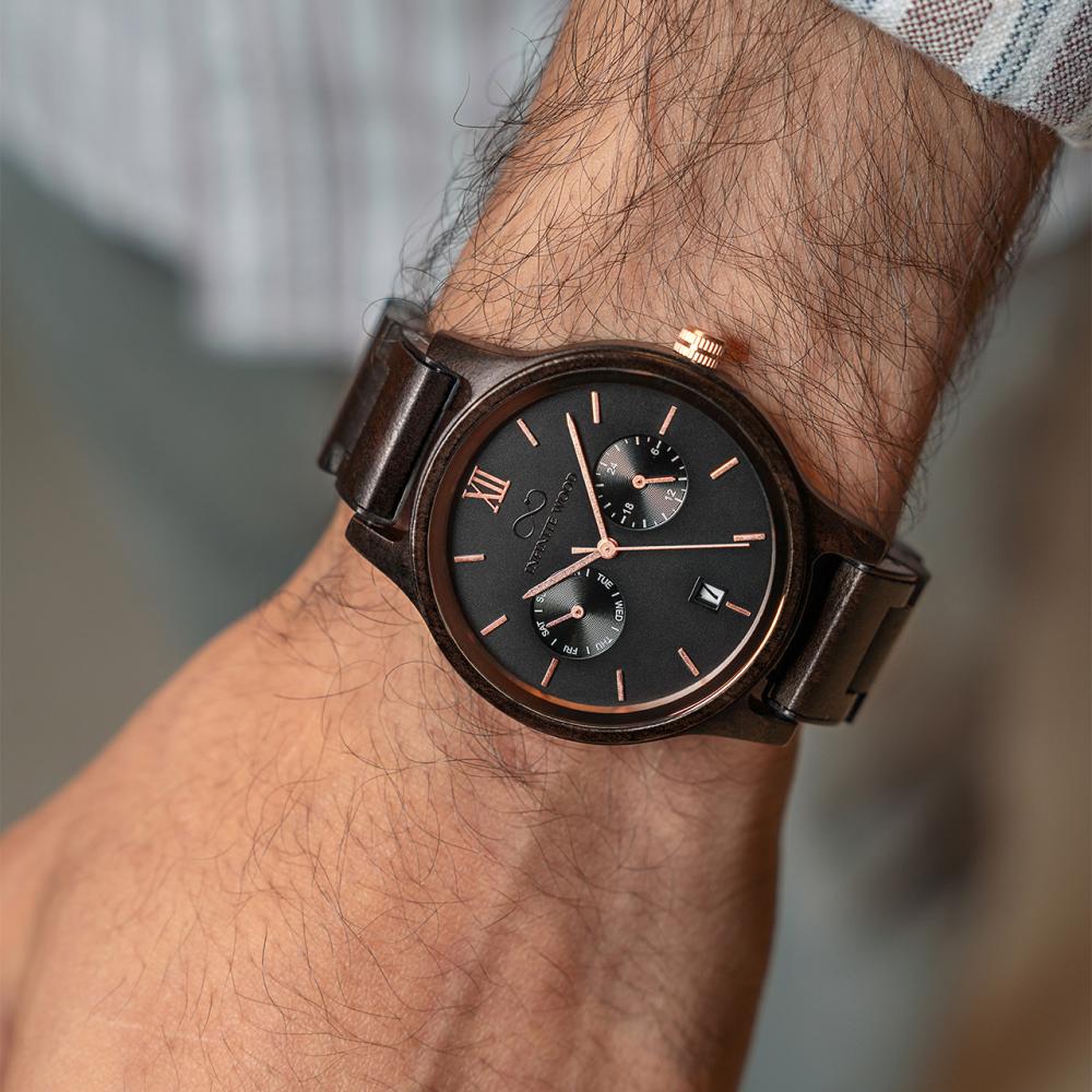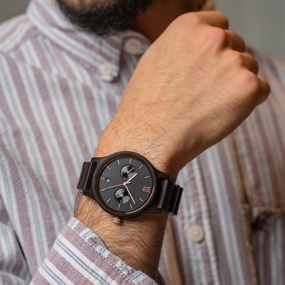 - حزام الساعة: قياس 18 ملم من خشب الأبنوس الأفريقي