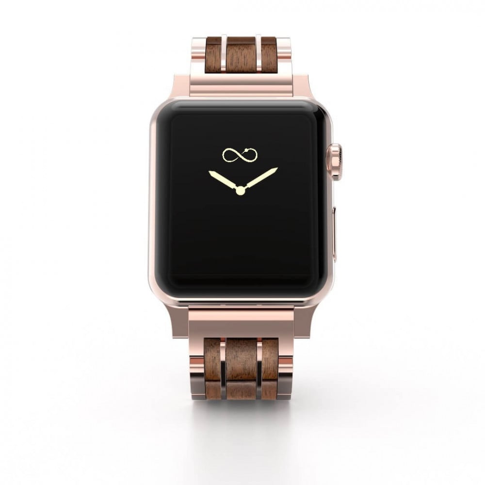 أضف لمسه سحرية لساعة أبل الخاصه بك - حزام مصنوع من خشب الجوز الأمريكي AMERICAN WALNUT الطبيعي 100% والفولاذ باللون الذهبي الزهري ROSE GOLD المقاوم للصدأ