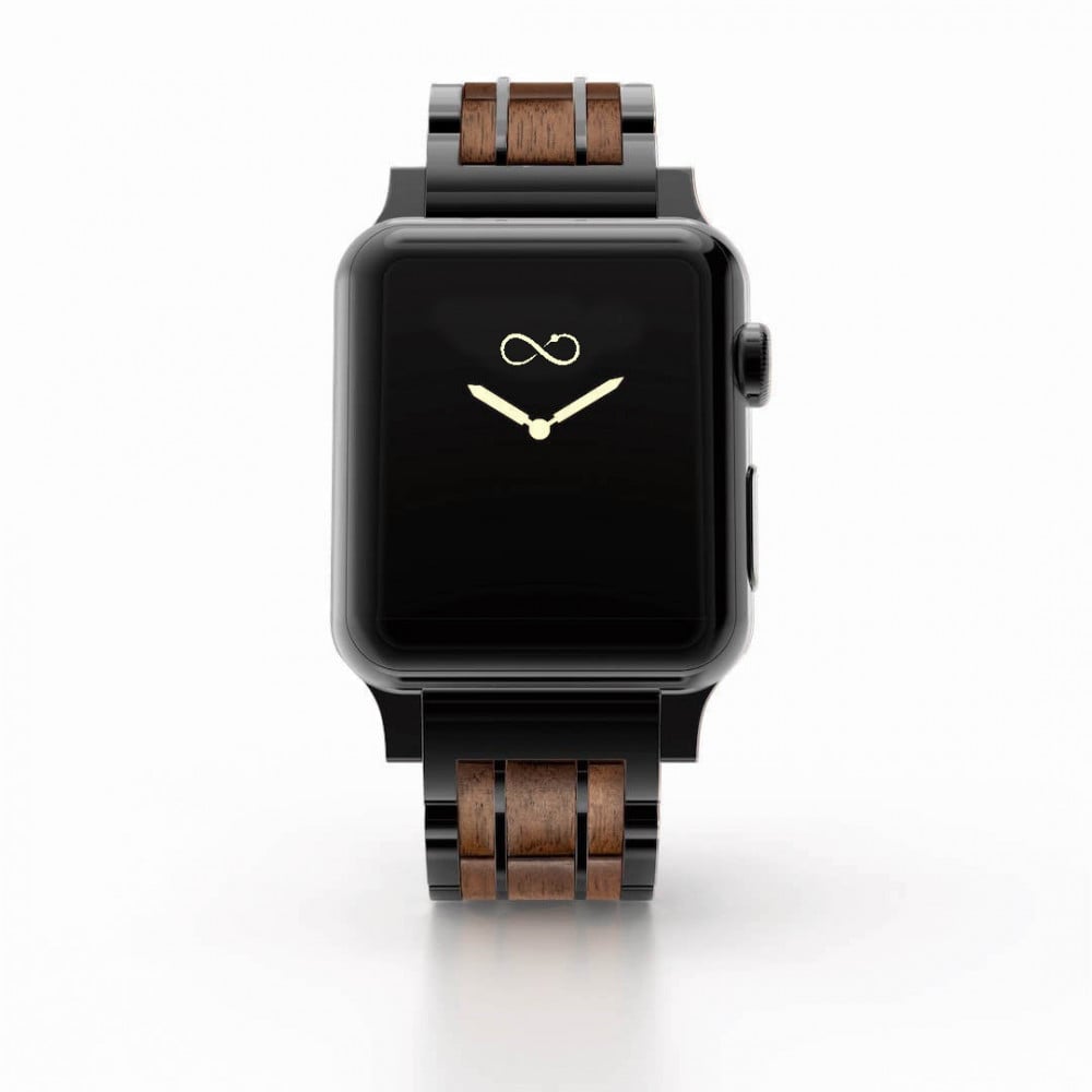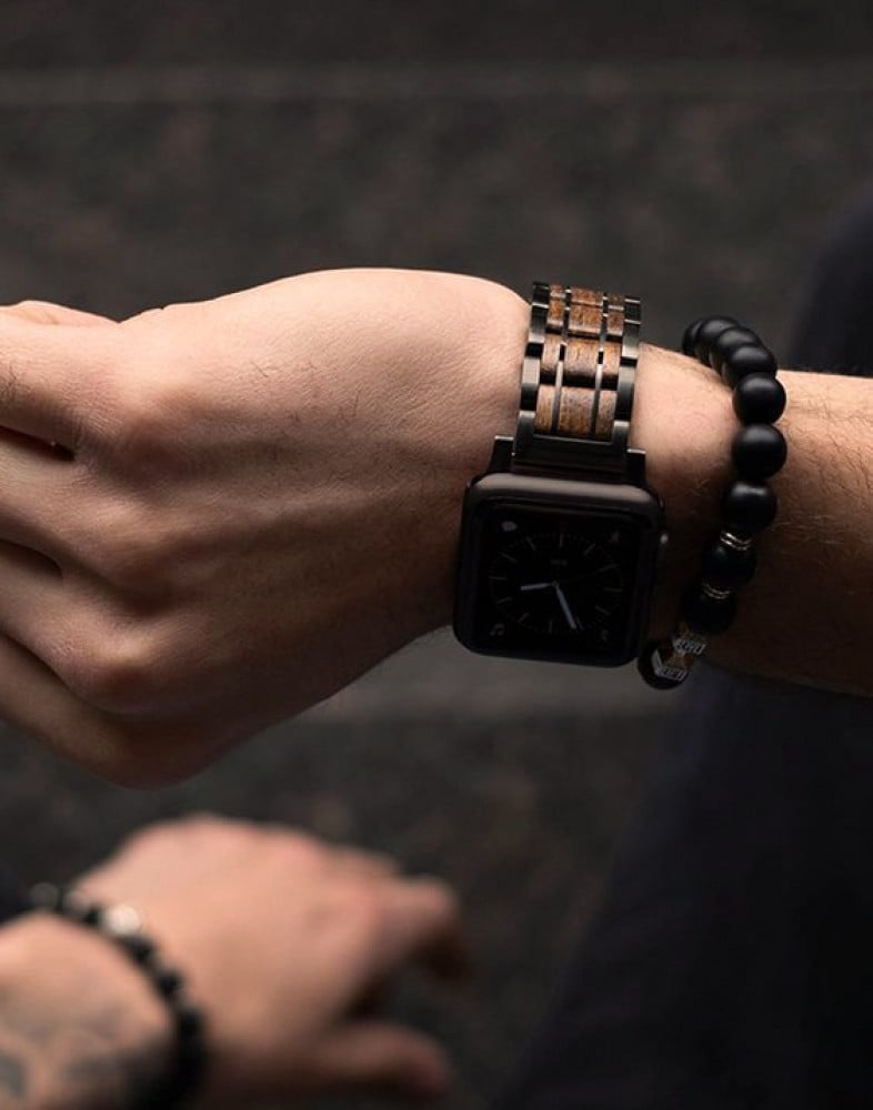 أضف لمسه سحرية لساعة أبل الخاصه بك - حزام مصنوع من خشب الجوز الأمريكي AMERICAN WALNUT الطبيعي 100% والفولاذ باللون الأسود المقاوم للصدأ